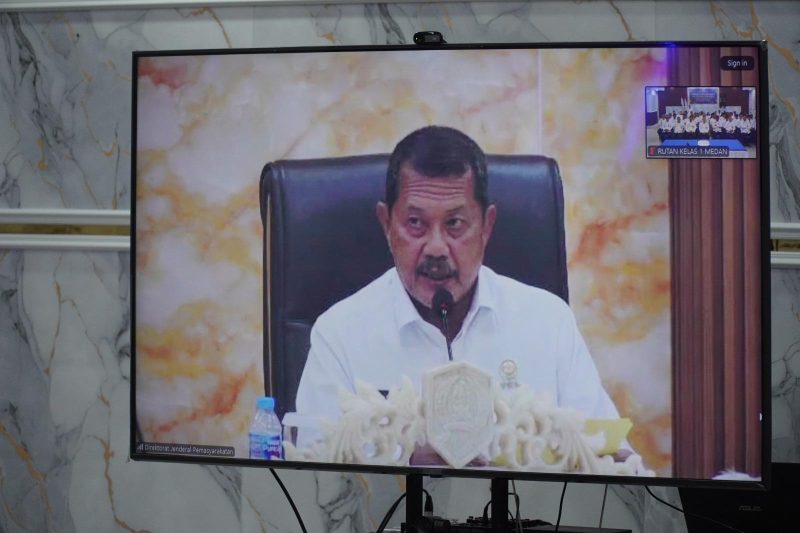 Medan — Dalam rangka memperkuat komitmen seluruh jajaran Pemasyarakatan terhadap upaya pemberantasan peredaran gelap narkoba, handphone, serta barang terlarang lainnya, Rumah Tahanan Negara (Rutan) Kelas I Medan mengikuti kegiatan Penandatanganan Komitmen Bersama yang dilaksanakan secara serentak di seluruh Indonesia melalui virtual zoom meeting yang terpusat di Direktorat Jenderal Pemasyarakatan, Kementerian Imigrasi dan Pemasyarakatan Republik Indonesia, Senin (20/10/2025).
